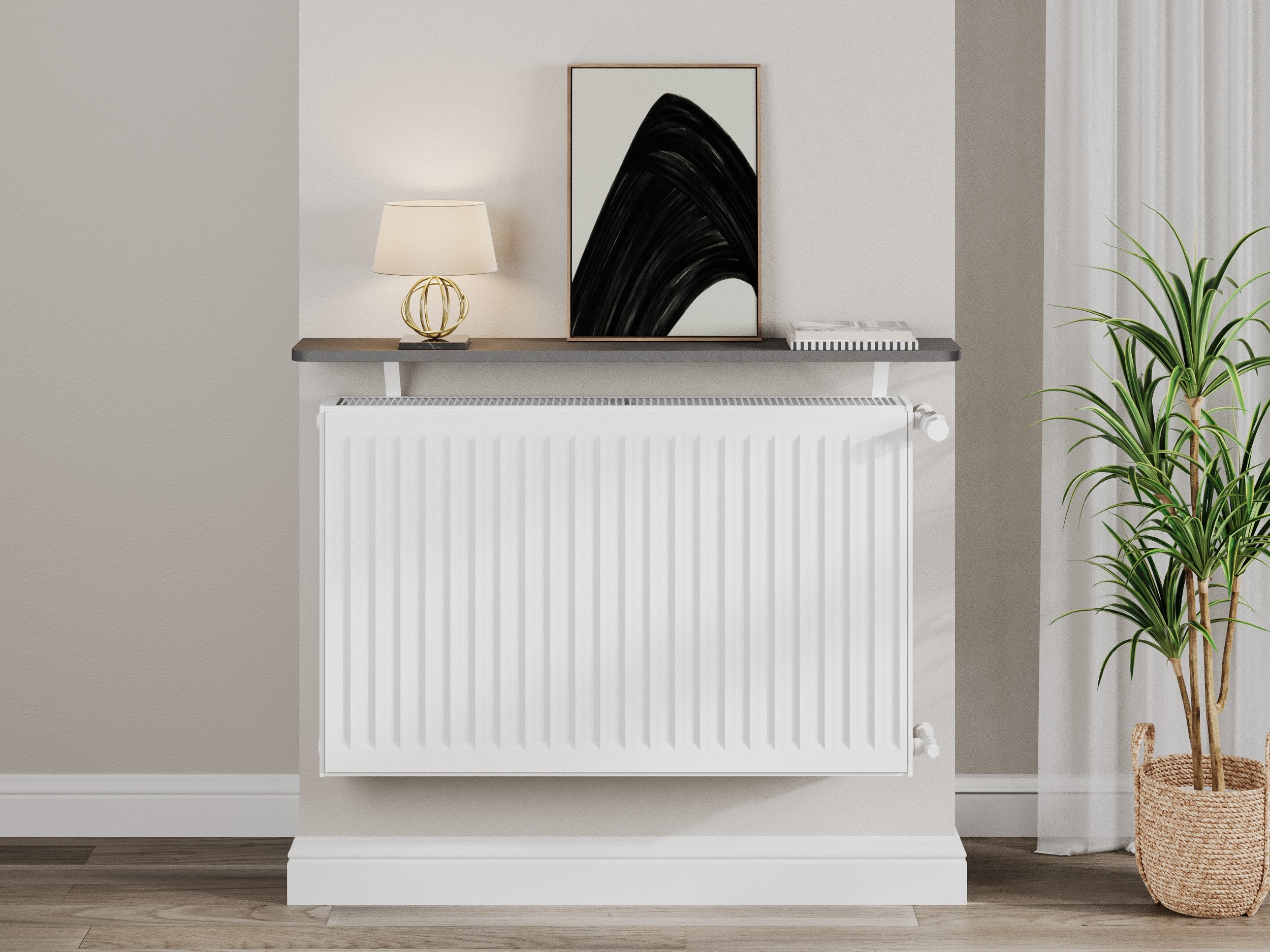 The smooth, durable surface is engineered to hold décor, candles, or essentials securely, adding both style and practical storage above your radiator.
