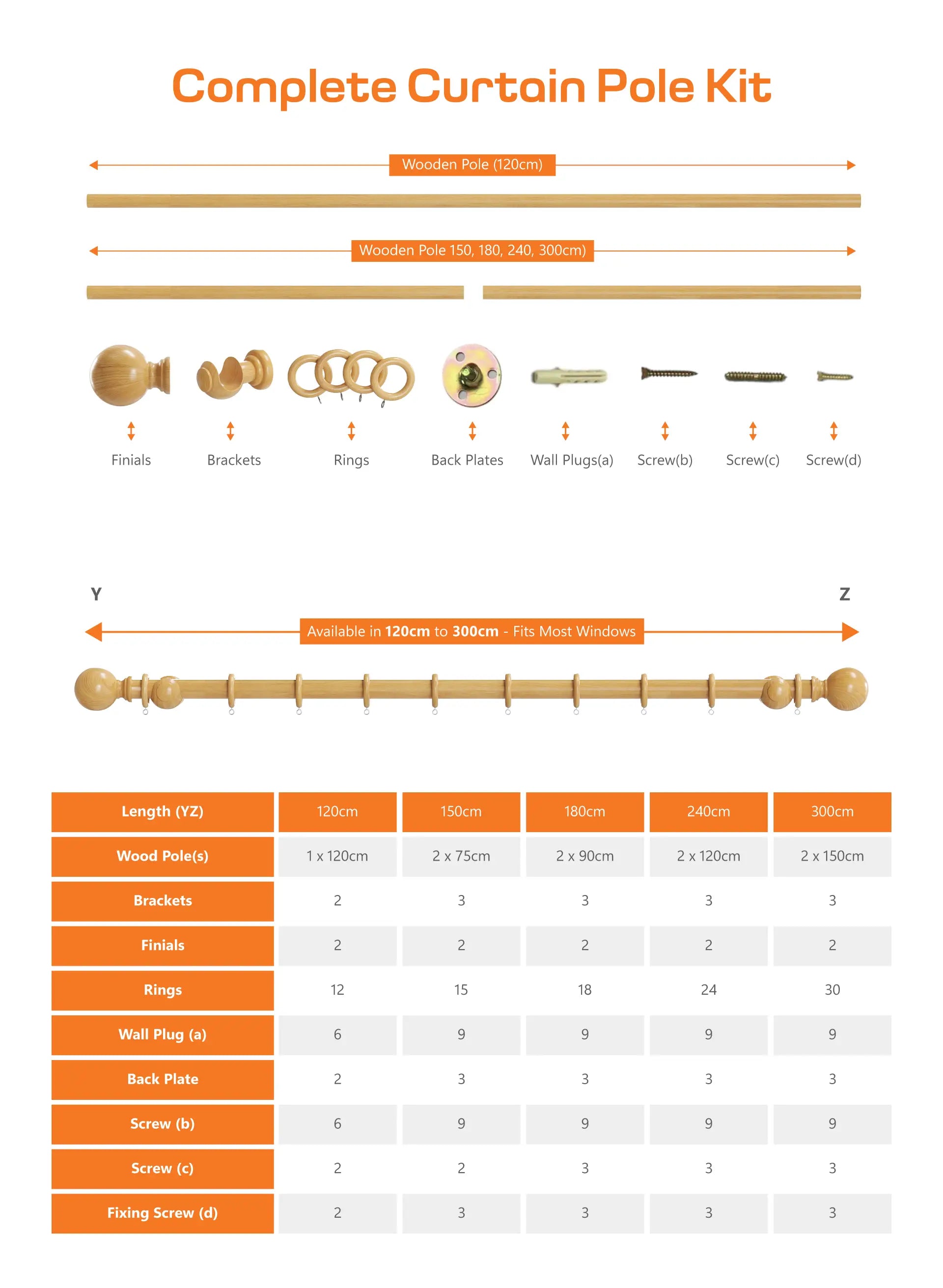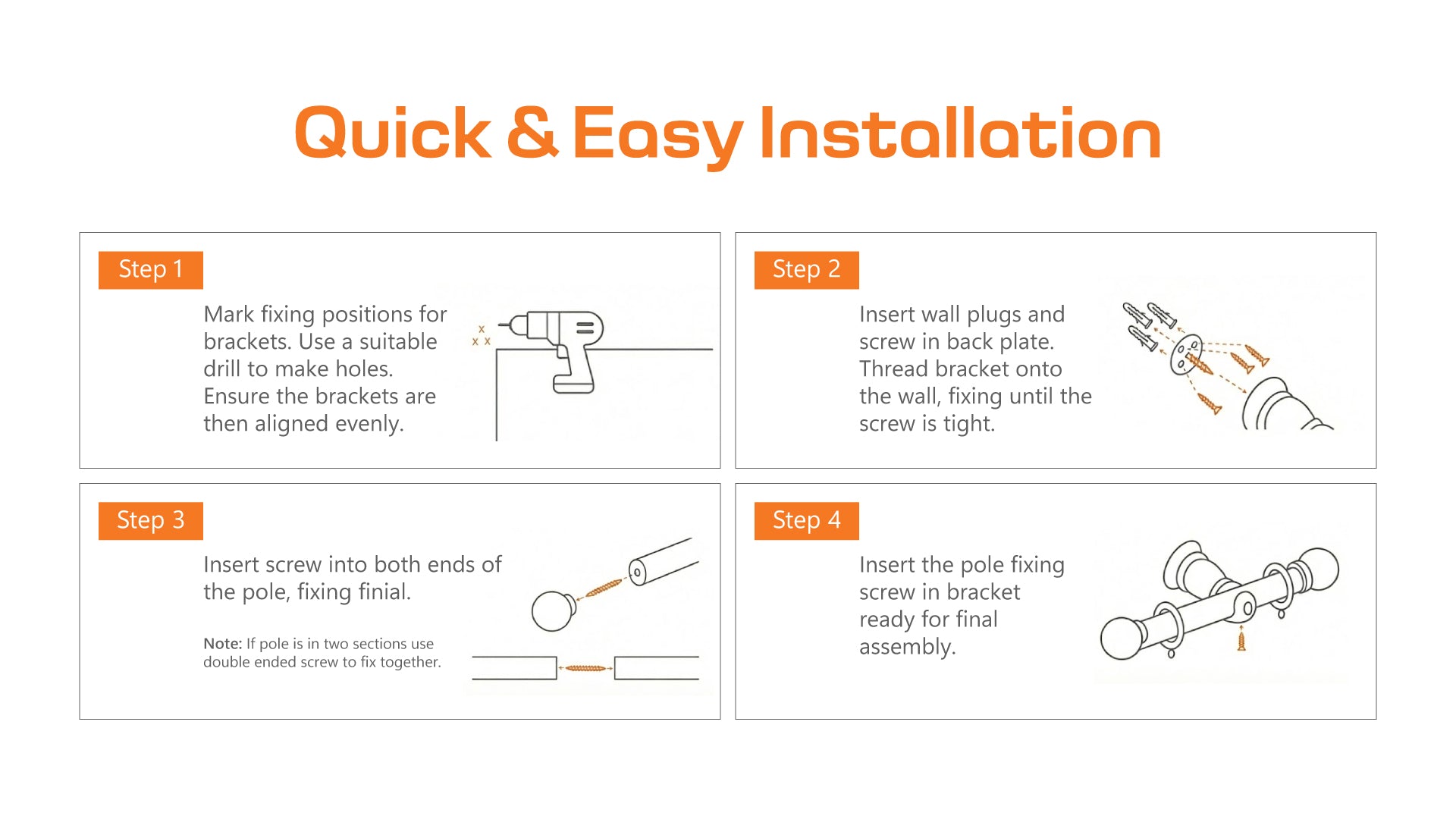 Includes all fittings, brackets, and finials for a quick, secure, and professional-looking setup.
